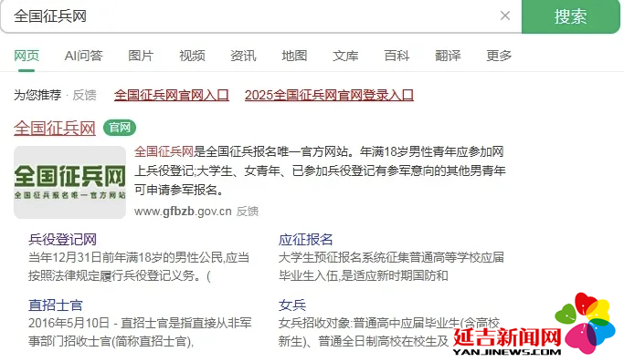 第一步:在浏览器中输入“全国征兵网”,选择官方网站。