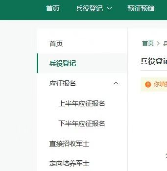 第二步:点击“兵役登记”,选择初次兵役登记。