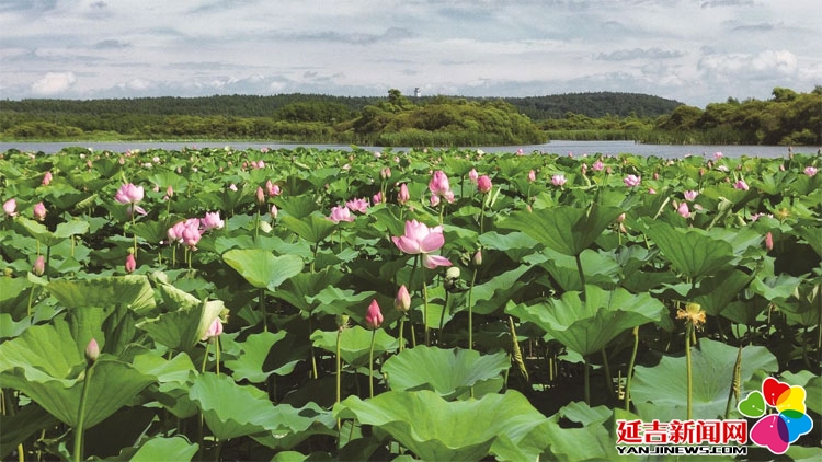 盛夏时节,净月潭国家森林公园内粉白荷花从绿伞中探出头来,与青山碧波相映成趣,共同编织出一幅灵动鲜活的山水荷韵图。(孙嘉良 吉林日报记者 刘奥琪 摄)