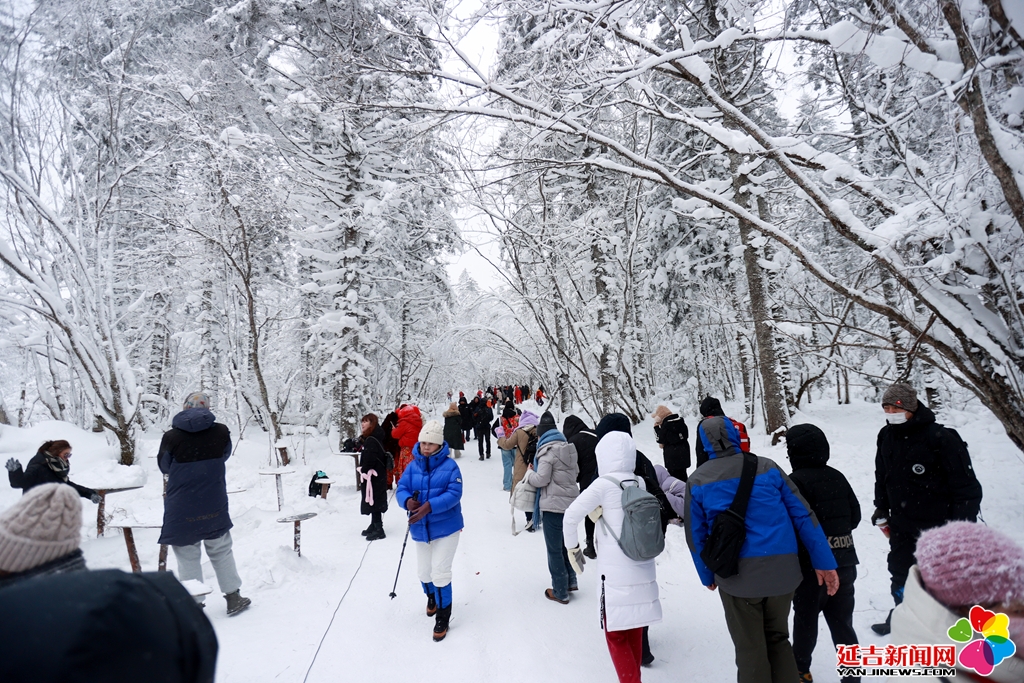 领导嘉宾与游客一起踏雪观景 李军广 摄