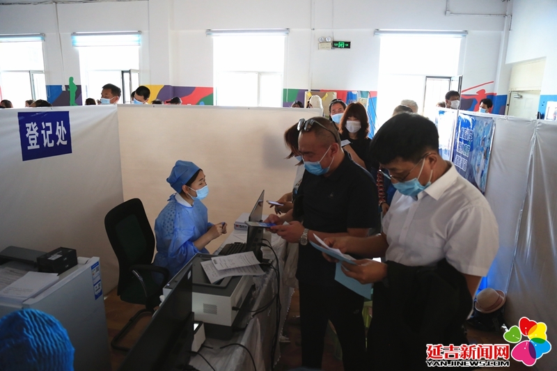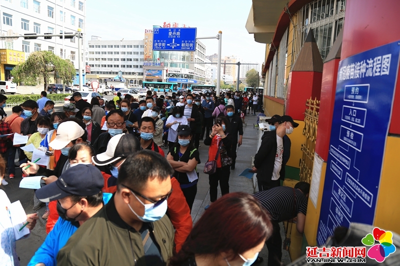 延吉大型新冠疫苗临时接种点启用首日 市民排长队接种