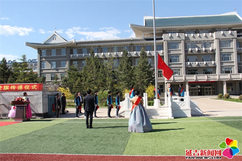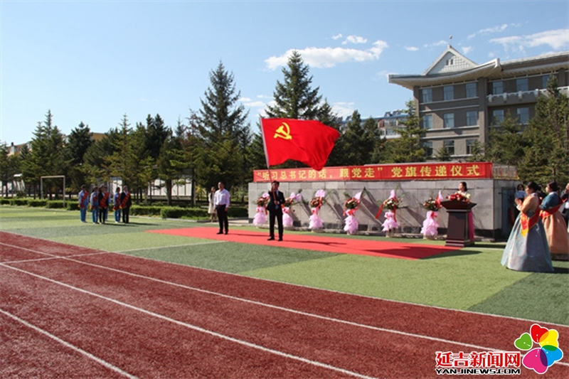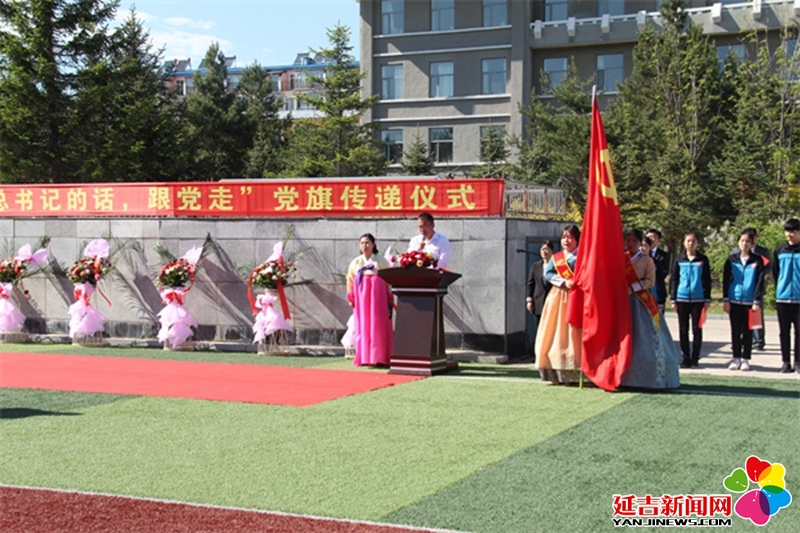 延吉新闻网5月20日讯(记者 杨婷婷)5月17日,延吉市教育系统党旗传递活动第20站在延吉市朝阳川第一中学举行。