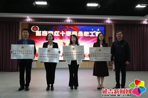 会上,副市长郭正吉为进学小学、河南小学、中央小学、延新小学授牌,命名他们为“延吉市红十字示范学校”,为四所学校发放心肺复苏模型、急救包等培训器材。延边州红十字会党组成员、专职副会长李延江为十佳红十字青少年指导教师和“百优”红十字青少年代表颁奖。进学小学校校长焦自清作了红十字青少年工作经验介绍。