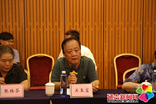东满特委书记童长荣外孙郑卫胜,中共东满特委书记、中共南满省委书记、东北抗日联军第一路军副总司令魏拯民长孙关玉富,东北抗联二军军长王德泰侄子王兆乾、东北抗联四军军长李延禄儿子李晓星、孙女李戈、外孙王山、外甥女杨丽珍,东北抗联四军军长李延平孙子李平、曾孙李子恩,东北抗联五军军长柴世荣儿子柴国华、儿媳蔡乾萍,表外孙女张桂芬、表外孙黄克毅,珲春籍红色作家骆宾基之子张书泰以及其他东满英烈亲属们共同参加了座谈会。大家追忆抗联先辈们的光荣事迹和艰苦岁月,共同回顾东北抗联金戈铁马的奋斗历程,进一步了解延吉的红色历史,对今后如何深入挖掘东满红色历史,弘扬抗联精神进行了交流探讨。