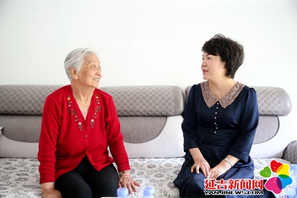 尹朝晖慰问建国前老党员金明淑 金洪石 摄