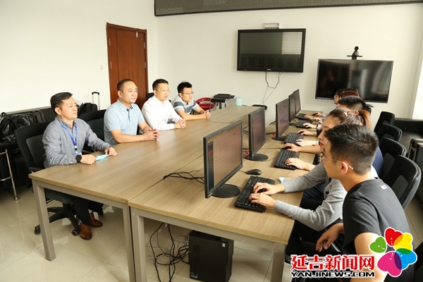 延吉市政数局主要负责同志与技术人员共同为新版系统上线做准备 季芳旭 摄