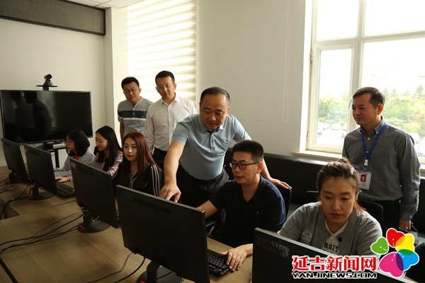延吉市政数局负责同志向技术人员咨询新版系统相关功能 季芳旭 摄