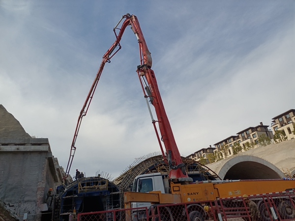 “隧道工程是中环路四期工程的重中之重,也是难度最大的工程。”记者根据该项目技术负责人赵博骁的指引,在位于苏州印象一期北门西北部的工程隧道施工现场看到,四个上圆下方的拱形隧道主体并排而立,其中两个围布脚手架,多名工人正在操作大型商砼车和混凝土输送泵进行浇筑作业;另外两个已经撤掉施工棚架,灰色的钢筋混凝土结构在两侧彩色楼宇的映衬下,颇具恢宏气势。