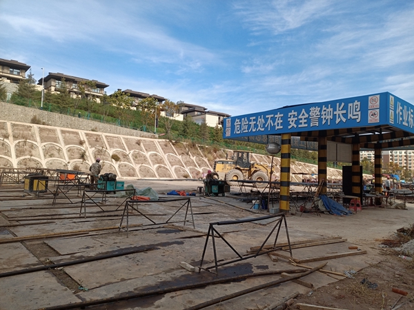 记者在州政务中心东侧的延吉中环路四期工程K2+200至K2+330标段看到,在高高的边坡陪护下,一条平坦的土路从山间向远方延伸。赵博骁告诉记者,中环路四期工程的道路宽60米,机动车道与非机动车道为沥青混凝土路面,人行道为预制彩色压缩砖路面。目前,道路工程挖、填土方已完成工程总量的70%。