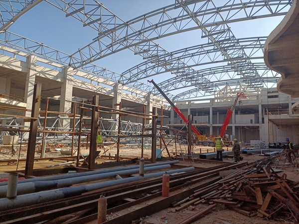 海豚表演馆水池观众席各就各位、室内水乐园的金属棚梁在阳光下熠熠生辉、色彩斑斓的过山车道在山谷中高耸急转、活灵活现的彩塑动物集群卖萌……环顾该园各个在建工区,一座集主题娱乐、文化体验、表演演绎等于一体的室内外主题游乐园“模样”已经清晰可见。