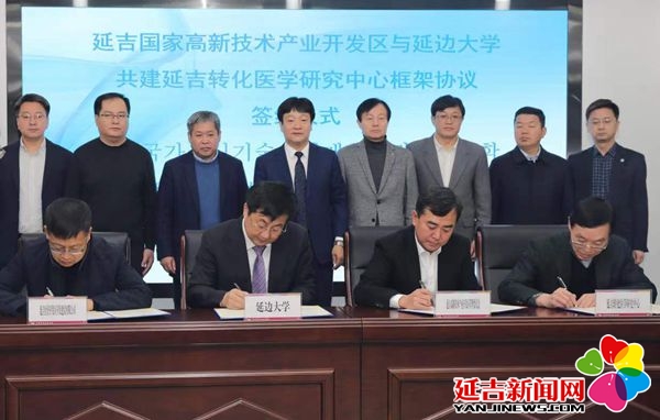 延吉新闻网12月23日讯(记者 季芳旭)12月22日上午,延吉高新技术产业开发区管委会与延边大学共建延吉转化医学研究中心签约仪式在延边大学举行。