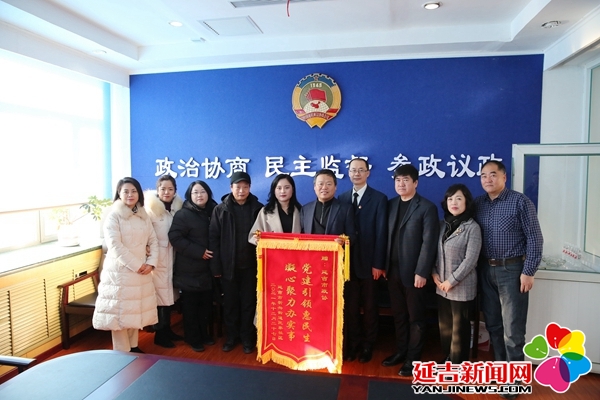 延吉新闻网1月5日讯(记者 杨婷婷)1月5日上午,在民泰社区工作人员的陪同下,民泰社区居民代表为延吉市政协送去一面写有“党建引领惠民生 凝心聚力办实事”的锦旗,感谢政协委员为小区居民解决“急难愁盼”问题。