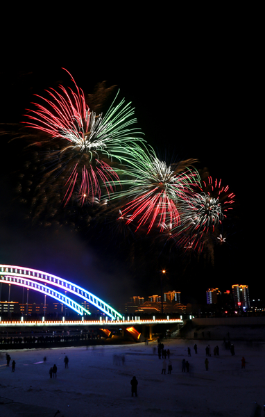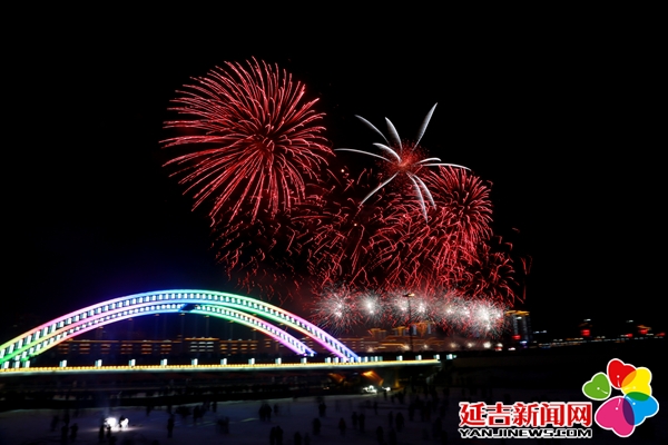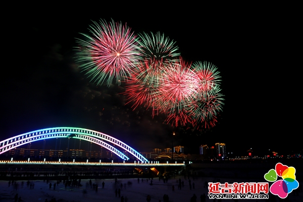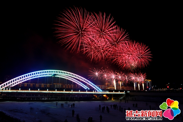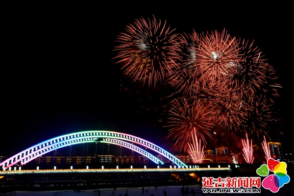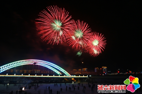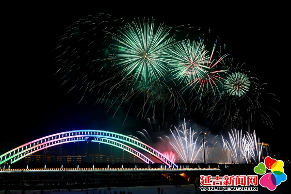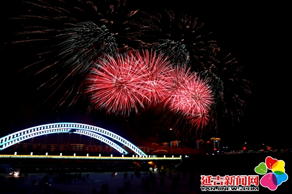 当晚,延吉市布尔哈通河北岸人潮攒动,市民们从四面八方赶来欣赏焰火表演。19时30分,焰火晚会正式开始。霎时间,五彩缤纷的礼花直冲云霄,竞相绽放,有如鲜花怒放,又似流星飞呈,铺展成漫天的流光溢彩,形成火树银花不夜天的壮丽景象……
