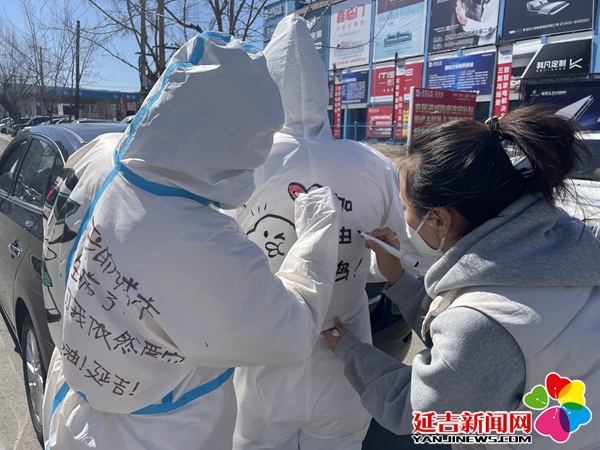 “DIY”手绘卡通防护服拉近了“大白”与市民的距离,舒缓了疫情期间居民居家的焦虑心理,提高了医护人员和志愿者们的工作效率。在疫情防控的跑道上,爱和希望远比病毒跑得快。这样一群最美“大白”是爱和温暖的代表,我们相信疫情终会因爱而散去,烟花人间必将重现繁华,延吉加油、吉林加油、中国加油!