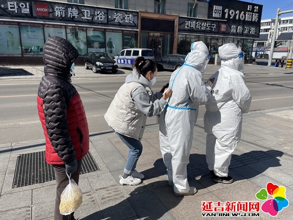 延吉新闻网3月22日讯(记者 韩丹)3月22日,在延吉市河南街道白梅社区的核酸检测队伍外出现了一群特别显眼的“大白”,他们的防护服身上有可爱的卡通图案,有暖心鼓励的话语“不要怕,有我在,家无恙、共团圆”……他们是来自延吉市向阳幼儿园的教师志愿者团队。