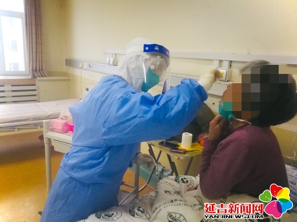 3月中旬,石佳接到了进驻延边医院隔离病房的紧急通知,她来不及回家看一眼,拿上行李继续战斗,她说:“白衣执甲,这次我为家乡而战。”在通过延边医院一系列的紧急培训和考核后,石佳马上投入到了隔离病房的工作中。按照隔离病房的工作流程,必须提前一个小时进入病房,穿戴好防护设备。在护目镜和防护口罩的挤压下,面部被勒出了一道道伤痕,她克服身体和心理的重重困难,平静地笑着说:“一切困难都是可以克服的,过几天就习惯了。”