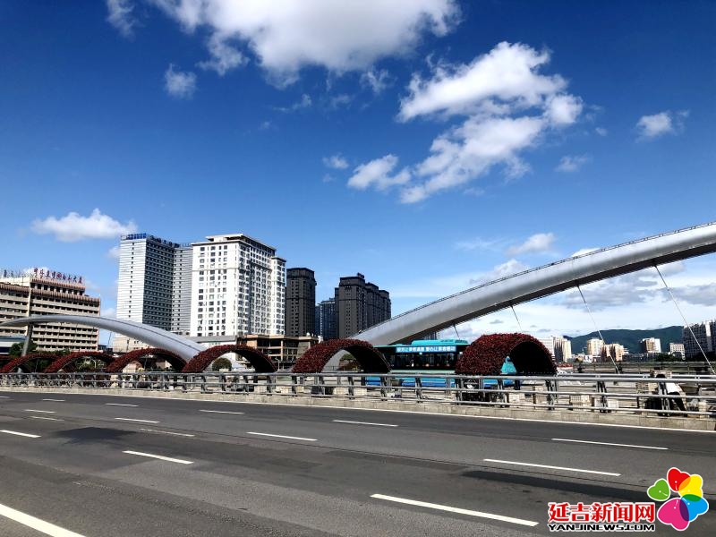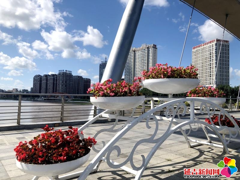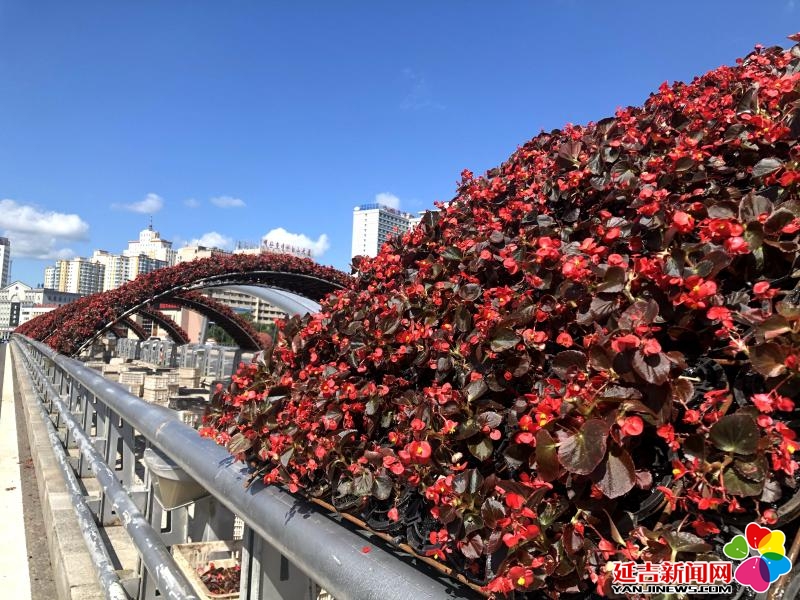 延吉新闻网7月11日讯(记者 王晓彤)7月的盛夏,延吉市延吉大桥上的簇簇花团在阳光的照射下灿烂耀眼,多彩的花朵竞相开放,过往行人都不禁停下脚步,拍照留念。