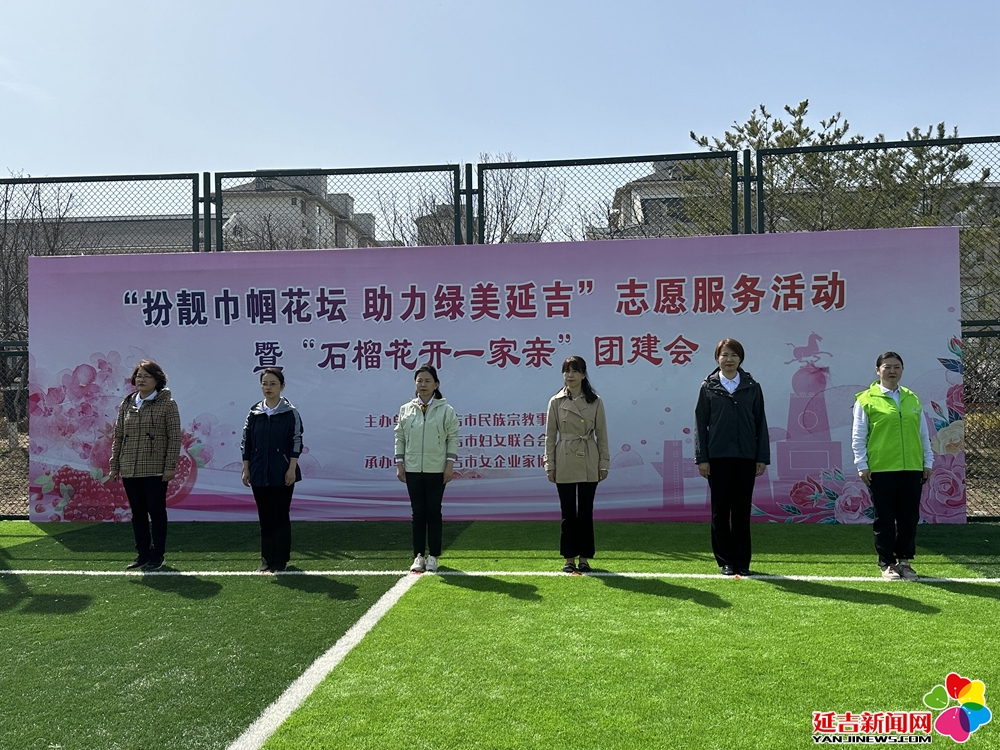 延吉新闻网4月20日讯(记者 金玲慧 )4月19日,延吉市妇联在延吉阿里郎足球公园组织开展了 “扮靓巾帼花坛 助力绿美延吉”志愿服务活动暨“石榴花开一家亲”团建会。