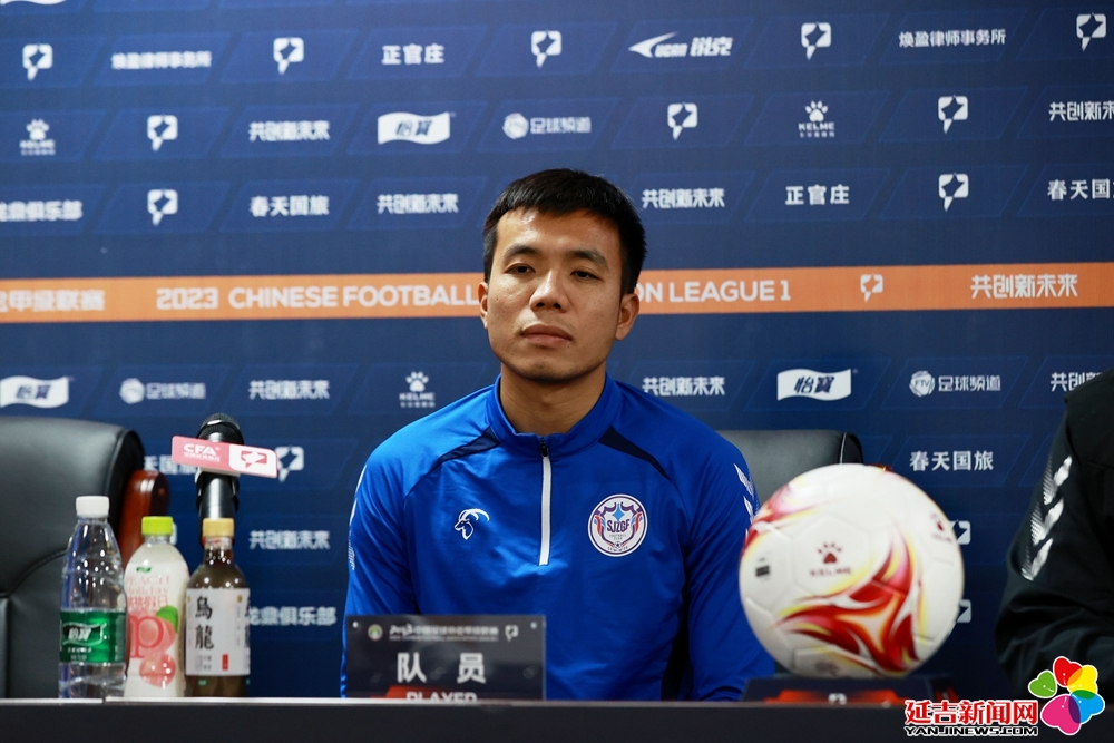 延边龙鼎队赛前新闻发布会 李军广 摄