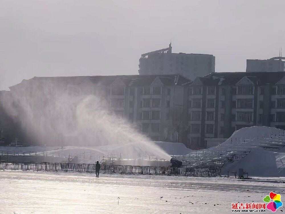延吉新闻网12月16日讯(记者 王晓彤)12月16日,记者在延吉市布尔哈通河延吉大桥西侧的冰面上看到,造雪作业已有序展开,延吉冰雪欢乐谷正在筹建当中,预计2026年元旦正式对外开放。
