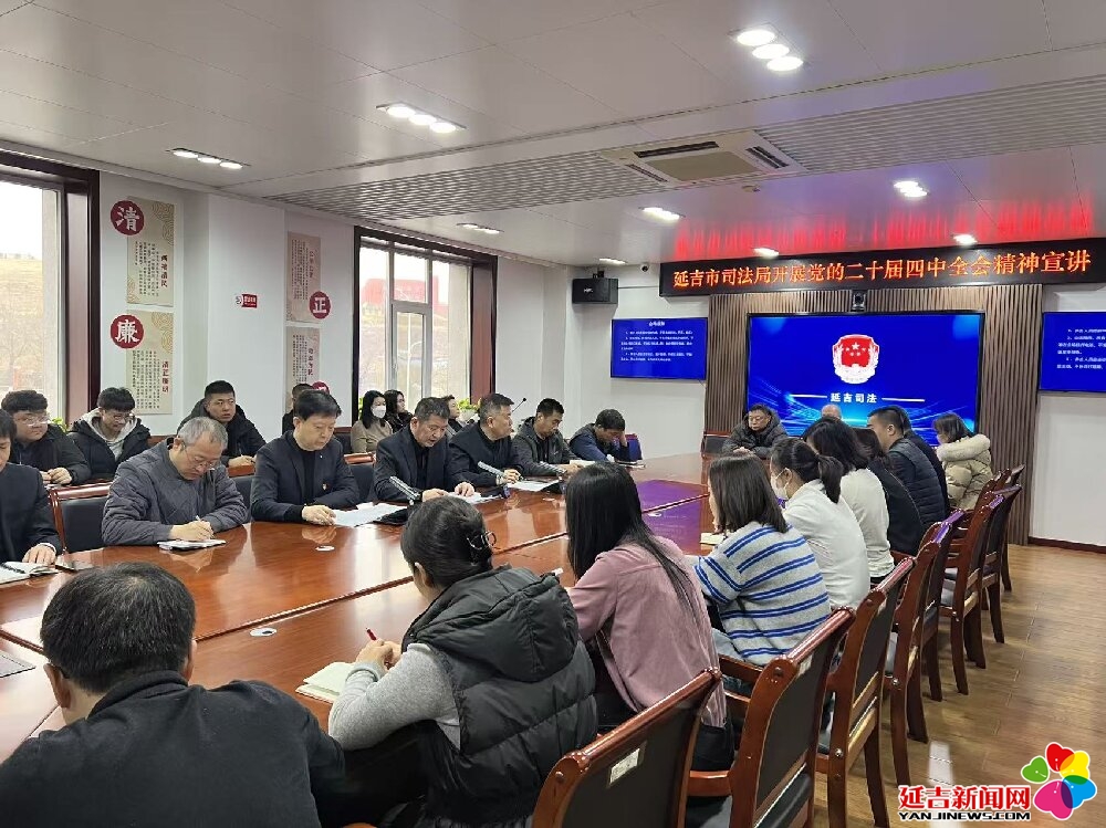 12月23日,延吉市司法局召开学习贯彻党的二十届四中全会精神宣讲会,党组书记、局长金升日为全体司法行政干部宣讲党的二十届四中全会精神。