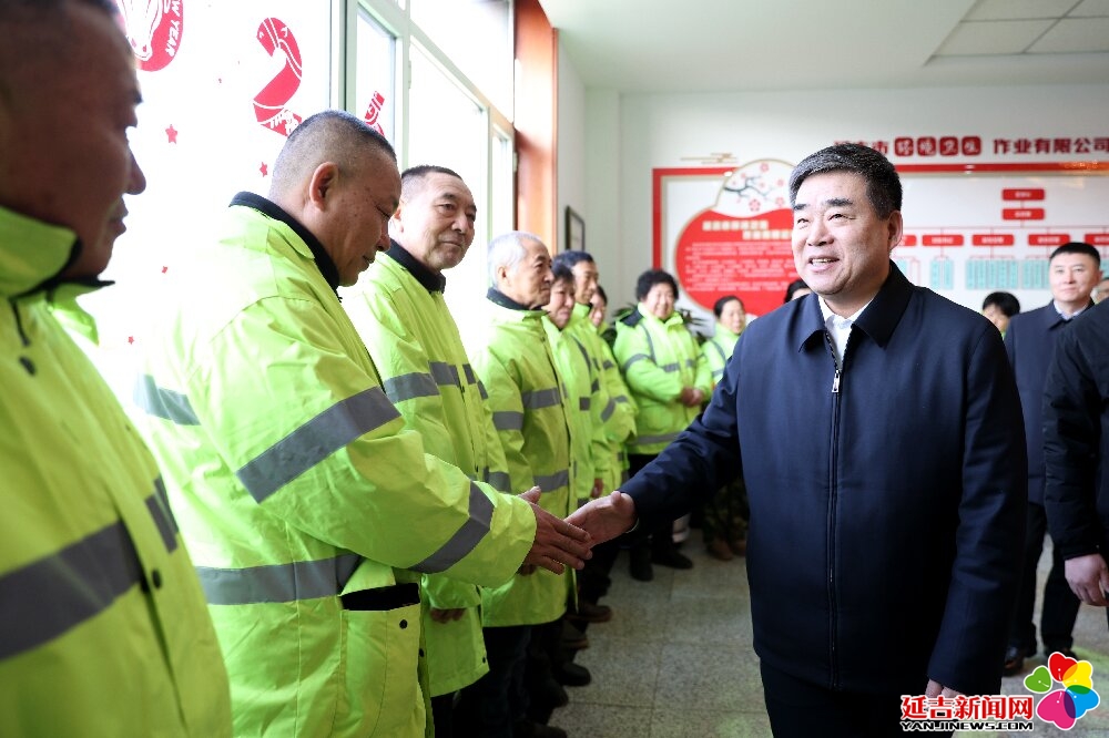 在延吉市环境卫生作业有限公司,王吉宝看望慰问坚守岗位的环卫工人,感谢大家为城市干净整洁所付出的辛勤劳动。他叮嘱相关部门要切实关心关爱环卫工人,完善后勤保障措施,合理安排作业时间,让环卫工人安心工作、舒心生活。