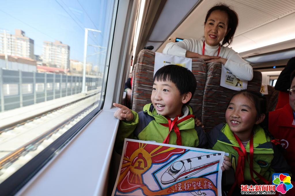 12月7日,来自西安、延安、铜川、渭南四市的西延高铁沿线居民及中小学师生代表参加西延高铁爱路护路主题宣传活动。