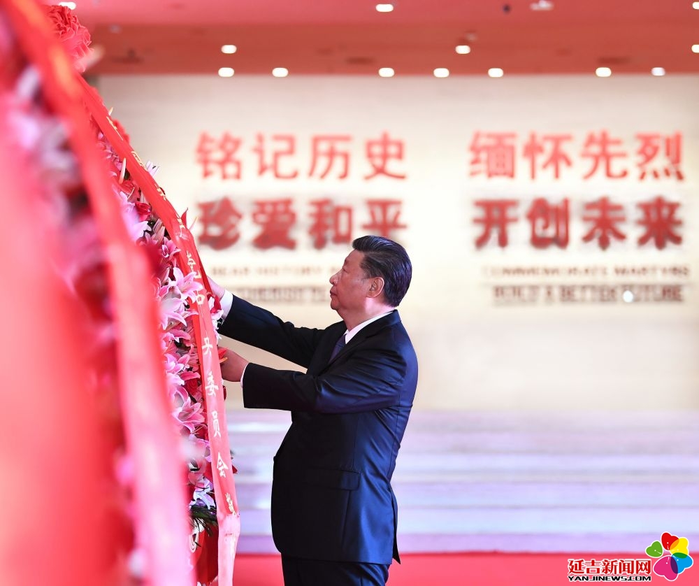 2020年9月3日,习近平总书记在中国人民抗日战争纪念馆出席纪念中国人民抗日战争暨世界反法西斯战争胜利75周年向抗战烈士敬献花篮仪式。