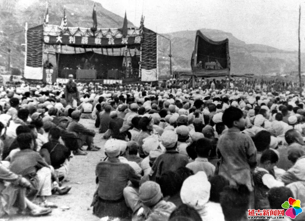 1945年,延安军民集会庆祝抗战胜利。