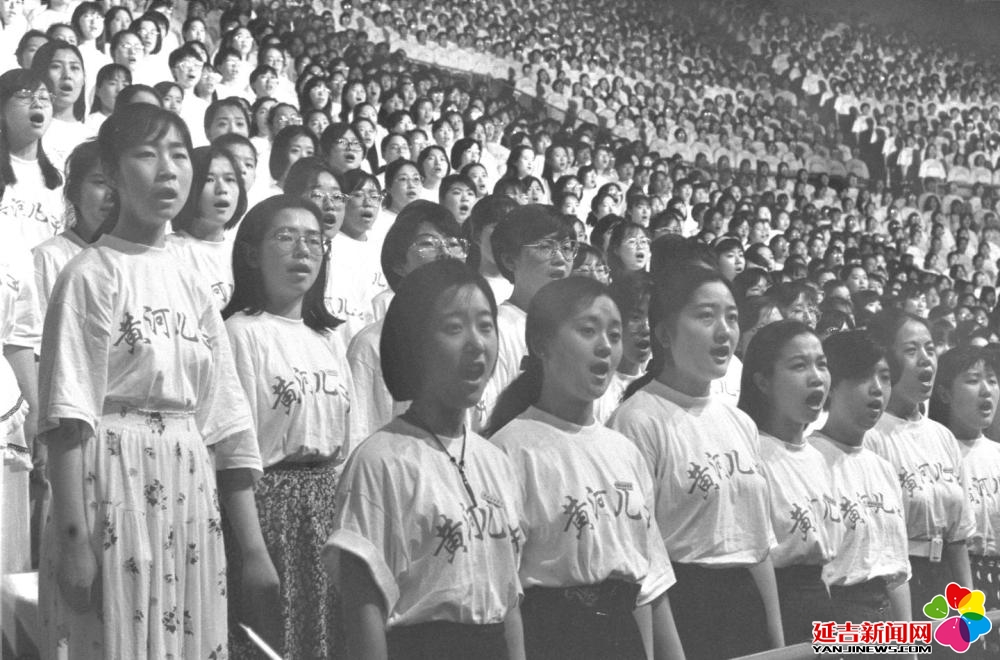 1995年,56所首都高校的1万名大学生在北京首都体育馆参加纪念中国人民抗日战争胜利50周年首都大学生《黄河大合唱》万人演唱会。