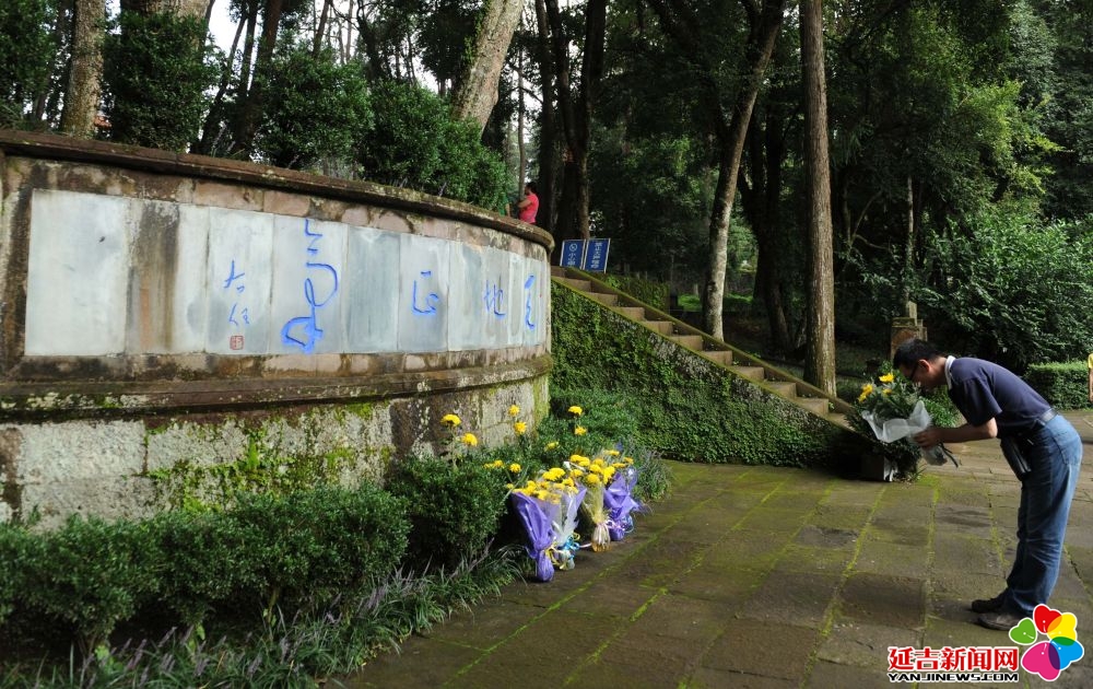 2012年8月15日,云南腾冲各地群众前往“国殇墓园”和“腾冲滇西抗战博物馆”等爱国主义教育基地,祭奠抗战先烈。这是一位市民在“国殇墓园”缅怀英烈。