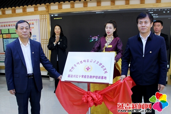揭牌仪式上,州红十字会党组书记、常务副会长崔文德与副市长张守亮为“延边州红十字应急救护培训基地”揭牌。