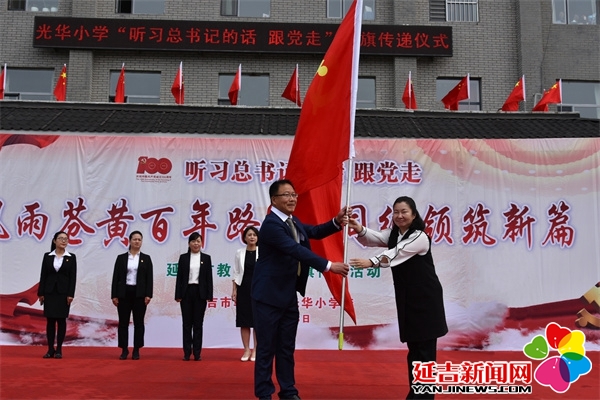 延吉新闻网5月17日讯(记者 杨婷婷)百年征程,岁月峥嵘;奋勇前行,不忘初心。5月13日,延吉市教育系统党旗传递活动第18站在朝阳川镇光华小学举行。