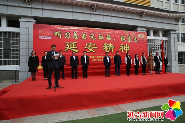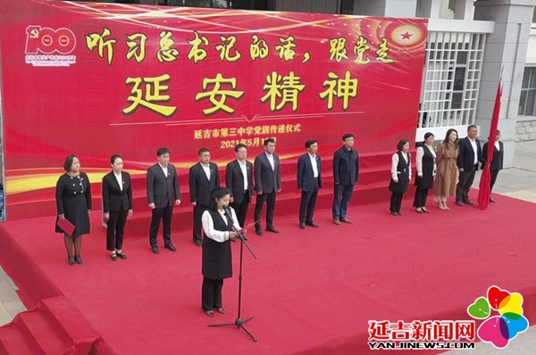 延吉新闻网5月14日讯(记者 杨婷婷)5月12日,延吉市教育系统党旗传递活动第17站在延吉市第三中学举行。