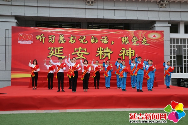 随后,第三中学进行了“喜迎建党100年 凝心聚力谱新篇”精彩演出,学校青年教师和学生们献上了诗歌朗诵《延安,我把你追寻》,校合唱队合唱《中国之梦》。诗歌颂出对延安深沉的呼唤,歌曲唱出在党的正确领导下,腾飞的中国之梦。最后,师生同唱《没有共产党就没有新中国》,用最洪亮的歌声向建党100周年献礼。