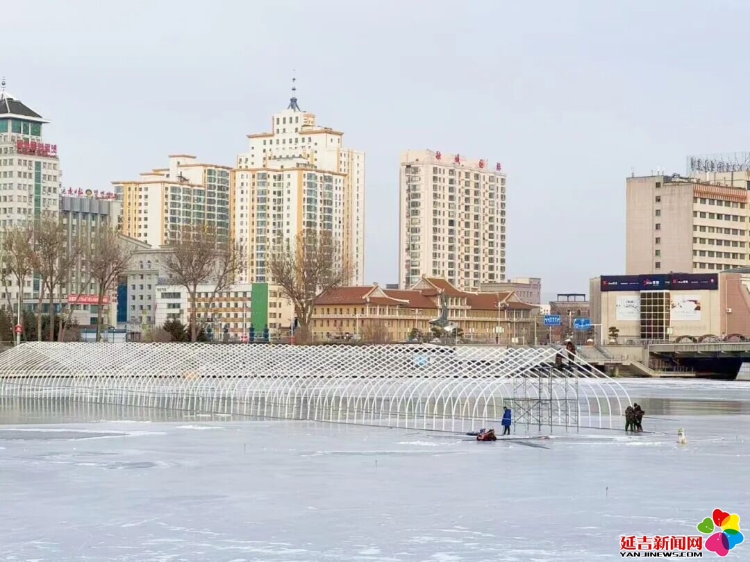 延吉新闻网12月16日讯(记者 王晓彤)12月16日,记者在延吉市布尔哈通河延吉大桥西侧的冰面上看到,造雪作业已有序展开,延吉冰雪欢乐谷正在筹建当中,预计2026年元旦正式对外开放。