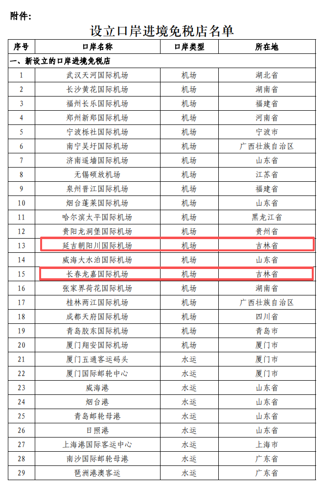 全国41个口岸将新增设进境免税店 延吉机场位列其中