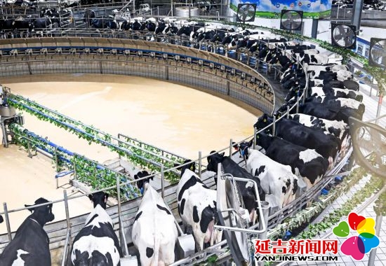 这是2025年7月28日拍摄的呼和浩特市伊利敕勒川生态智慧牧场挤奶车间。新华社记者 李志鹏 摄
