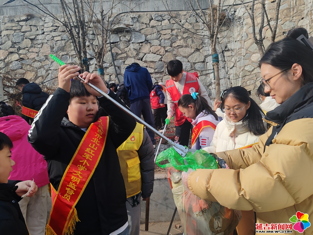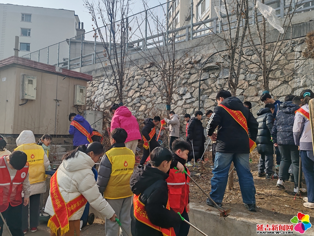 进学街道文明社区联合延吉市北山小学校开展雷锋日环境清洁活动