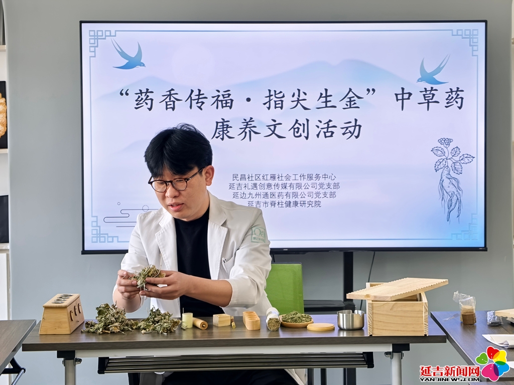 3月24日,“红雁艾家”内药香弥漫,一场“药香传福·指尖生金”中草药康养文创活动温情举行。活动由红雁社工组织牵头,联合社区匠人馆、延吉市脊柱研究院、延边九州通医药有限公司党支部及延边大学志愿者、辖区灵活就业人员共同开展,创新采用“双场地并行”模式,同步推进中药文创手作与养生义诊。