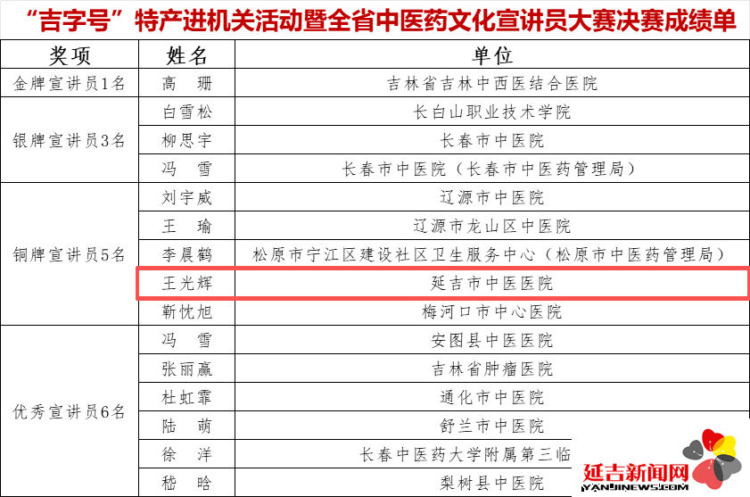 延吉选手在吉林省第二届中医药文化宣讲员大赛中斩获佳绩