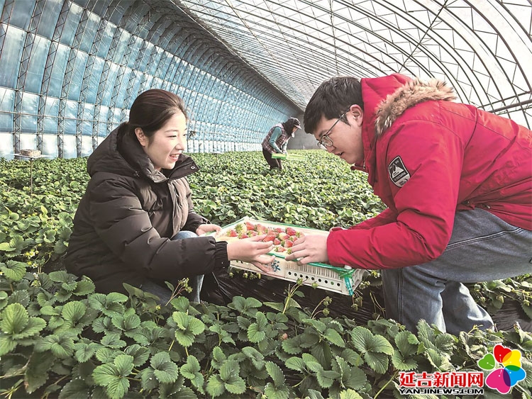 辽源市龙山区草莓大棚内暖意融融