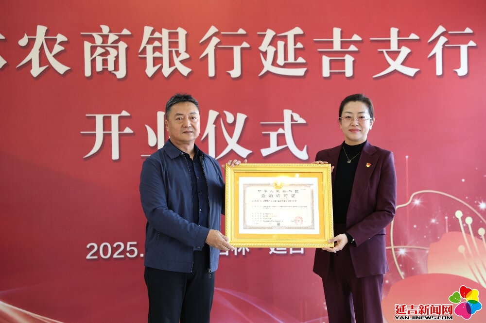 现场,国家金融监管总局延边监管分局为吉林农商银行延吉支行颁发金融许可证,延吉市市场监督管理局为吉林农商银行延吉支行颁发营业执照。