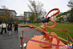 11月2日,人们从成都市天府长岛数字文创园的哪吒雕塑旁走过。天府长岛数字文创园是成都高新区围绕数字文创产业策划打造的专业 ...