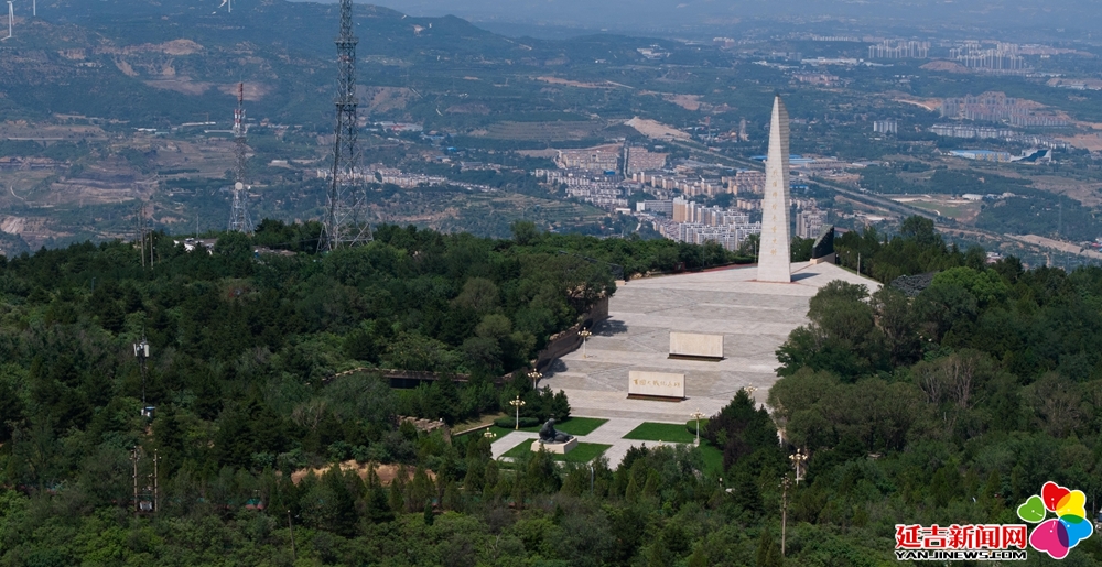 △狮脑山顶峰,百团大战纪念碑如一把锋利的刺刀直插云霄。(总台国广记者李晋拍摄)