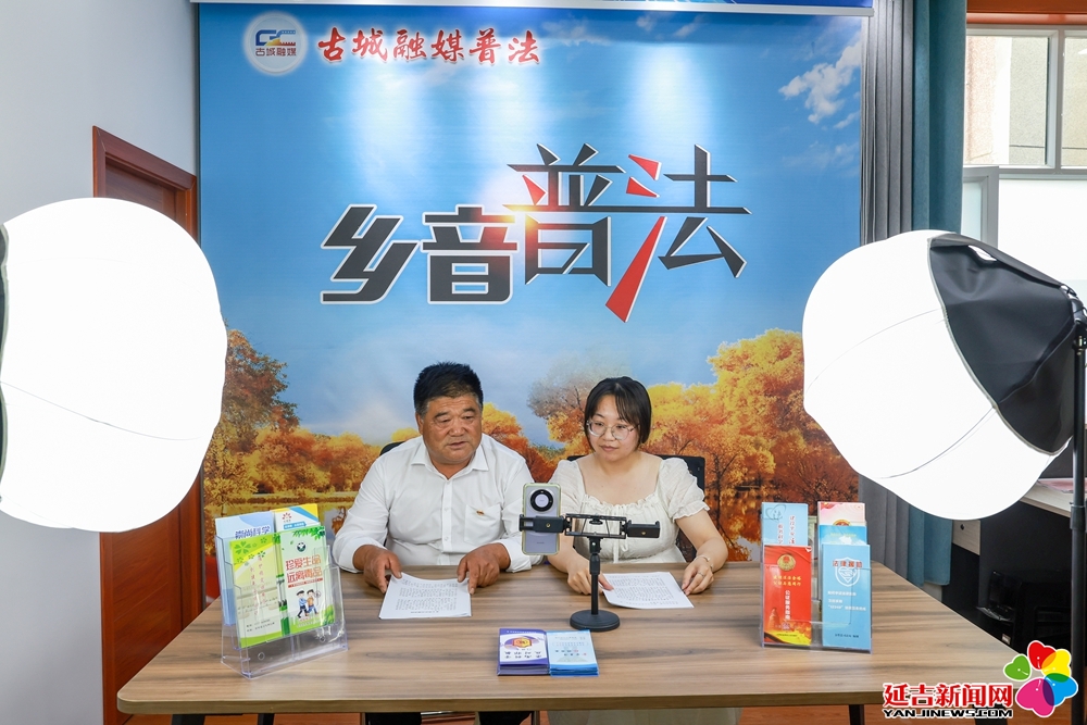 2025年6月20日,甘肃酒泉,金塔县古城乡综治中心工作人员进行“乡音普法”直播,解读与群众生产生活相关的法律法规。