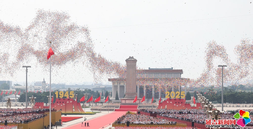 2025年9月3日,纪念中国人民抗日战争暨世界反法西斯战争胜利80周年大会在北京隆重举行。这是纪念大会现场放飞和平鸽和气球。新华社记者 姚大伟 摄