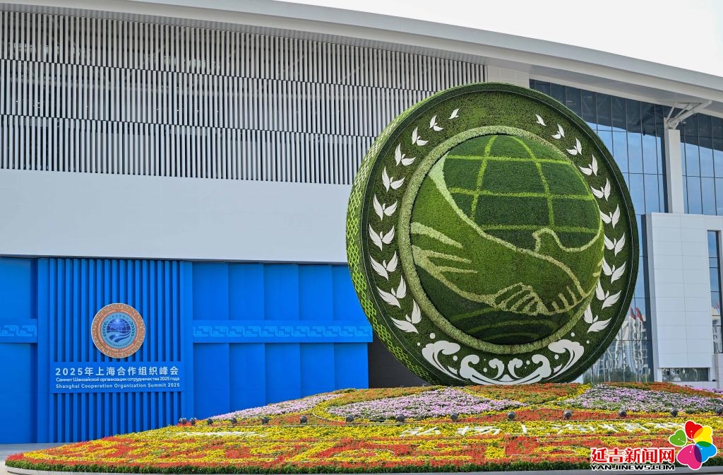 这是2025年8月30日拍摄的2025年上海合作组织峰会主会场外景。新华社记者 孙凡越 摄