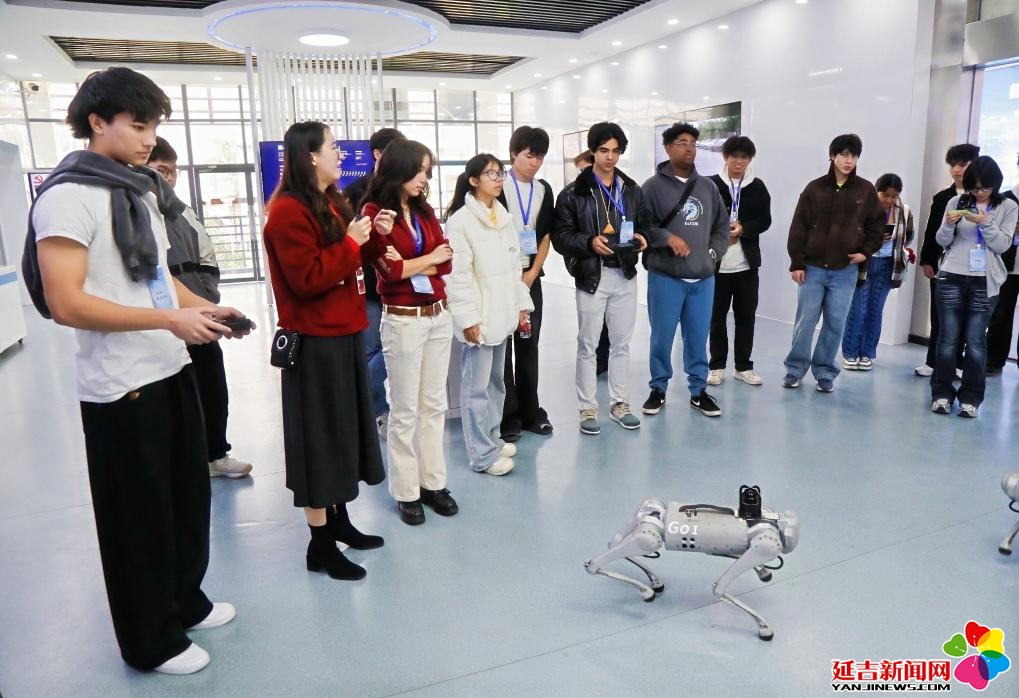 美国“飞虎队友谊学校”代表团学生体验操控四足机器人(2025年12月26日摄)。新华社发(广西壮族自治区外事办供图)