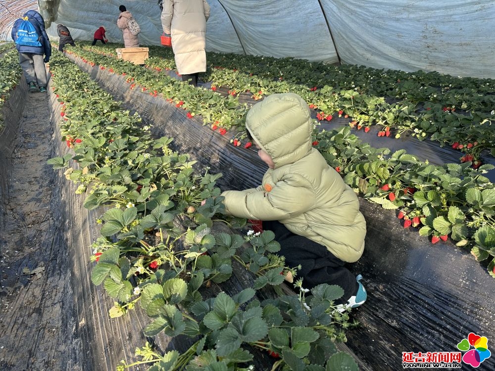 2026年1月22日,在河南洛阳孟津区送庄镇十里香现代农业观光园,前来研学的孩子们体验采摘草莓的乐趣。(受访者供图)